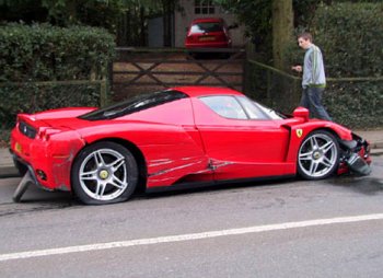 the red Enzo had severe damage to its offside which had to be